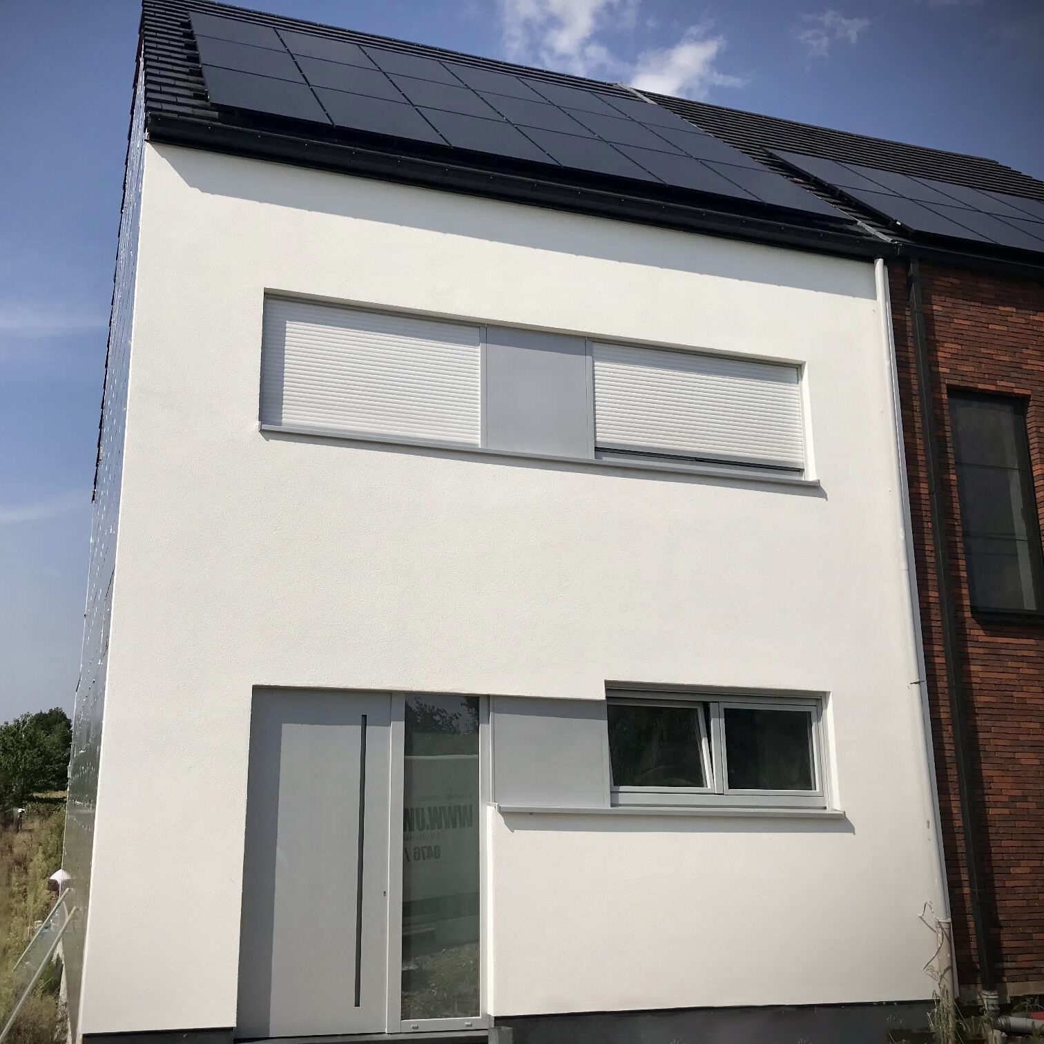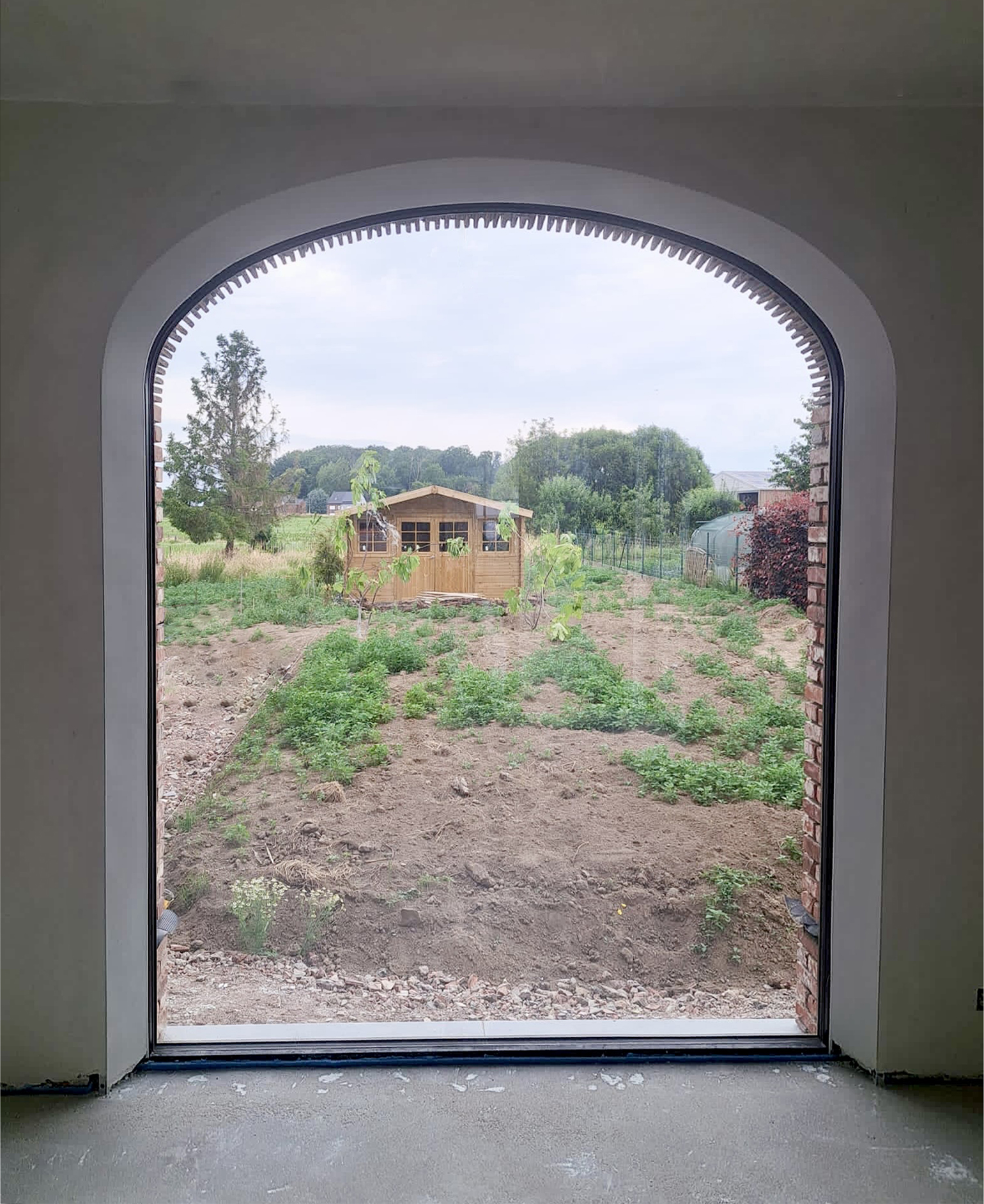 Ook bieden wij landelijk strak aan. Hier kunnen raamslagen schuin uitgepleisterd worden. En hier en daar komt er in een deur of raam een boog tot z’n recht. Bij beide vormen zorgen we ervoor dat alles perfect wordt beschermd van chape, vloer, ramen alsook reeds bestaande afgewerkte realisaties.